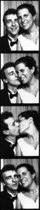 In the ensuing years, I continued to make art in booths as I encountered them, but it wasn't until 2002 that I renewed my efforts with greater focus. That year, I got engaged, and we included some photobooth imagery in our wedding invitation. After completing the invitations, it occurred to me that a photobooth would be a fantastic addition to our wedding reception: guests could take photos with old friends and family, and we could create a visual guestbook of all attendees. Unfortunately, the photobooth rental industry didn't exist yet. I called everyone I could think of who might rent me a booth: arcade owners, travelling carnivals, antique dealers -- I called all over the country and I found no one. I was told over and over that the booths "weren't made for that kind of thing". In a moment of desperation, and with the kind assistance of George Grostern, I purchased my very own vintage black and white photobooth from Autophoto Canada. It arrived two days before my wedding, and I stayed up most of the night before the big day trying to figure out how to mix the chemistry, adjust the machine, and get a photo to print. I got it working and the booth was a hit. Once all the wedding dust settled, I realized I had conveniently ended up with a photobooth that I could use whenever I wanted to make my art. In an effort to fund my artwork, I decided to start renting the booth out for parties and events. The rental idea became PhotoboothStL, and the work I created in my new booth culminated in a art opening at Mad Art Gallery in September of 2003.